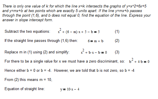 b. Assuming this means the intersection of the curve with the horizontal line at y = 5, there will be two points of intersection.