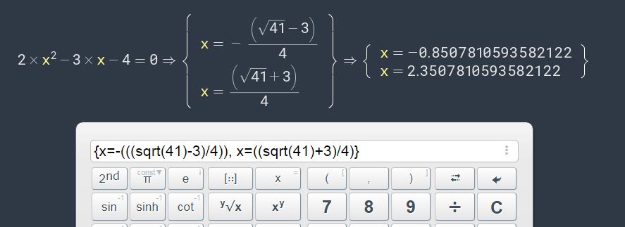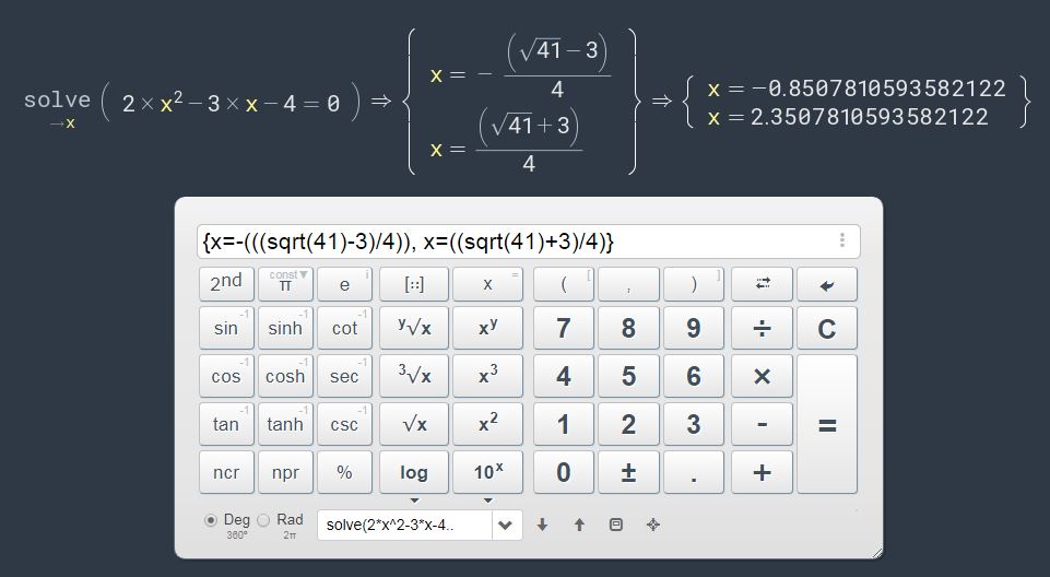Go to the calculator on the HOME page and type in solve followed by your quadratic equation, then hit enter. See following example: