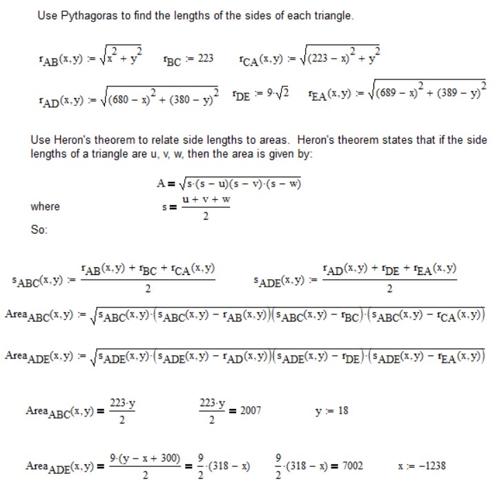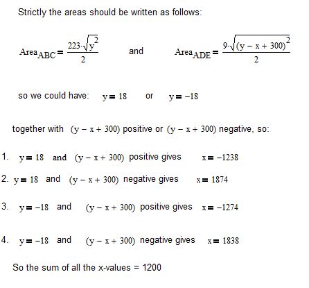 I think there are four possibilities for A; see https://web2.0calc.com/questions/triangles-abc-and-ade-have-areas-2007-and-7002-respectively#r3