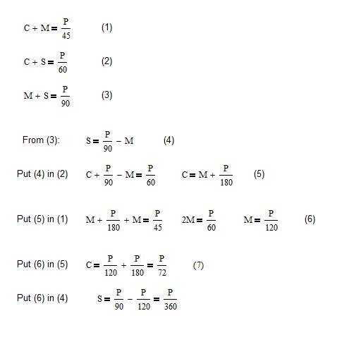 Put this into (2) w1 + 90 = 165 so w1 = 75