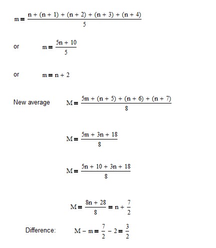 "The average of five consecutive natural numbers is m. If the next three natural numbers are also included, how much more than m will the average of these 8 numbers be ?"
