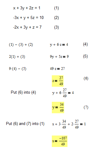 Put this back into (1) y = 5*15 + 4 so y = 79