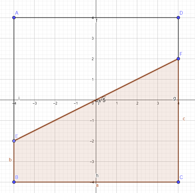 Draw the line \(x = 1\) and let the red line be \(y = kx\).