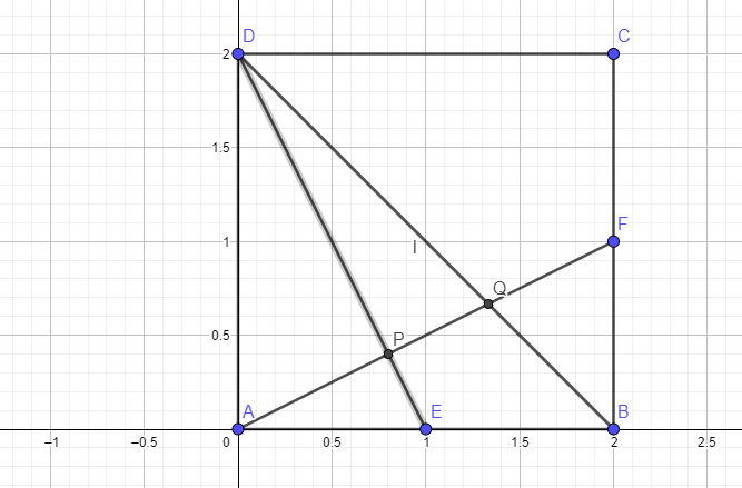 Segment AF has a slope of ( 1-0) /(2 - 0) =1/2