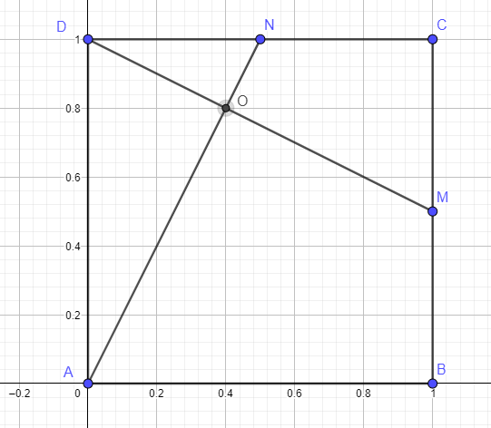 The slope of the line containing DM is ( 1 - .5) /( 0 -1) = -.5 = -1/2