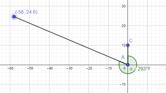 So.....its position in the coordinate plane = ( 63 cos 157° . 63 sin 157°) = (-58 , 24.6)