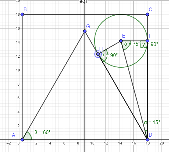 Angle EDF =15 angle FED =75