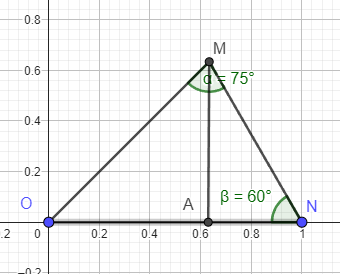 Angle OMN = 75° Angle MON = 45° Angle MNO = 60°