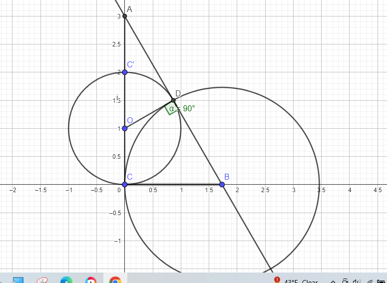 Construct a semicircle with a radius of 1 at O = (0,1)