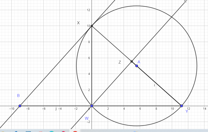 A is the circumcenter = (5sqrt(5) /2 , 5) = (sqrt 125) / 2 , 5)