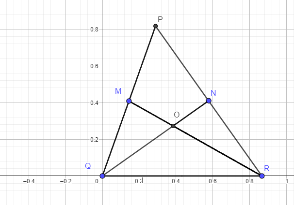 O is the intersection of medians QN and RN { O is the centroid of PQR)