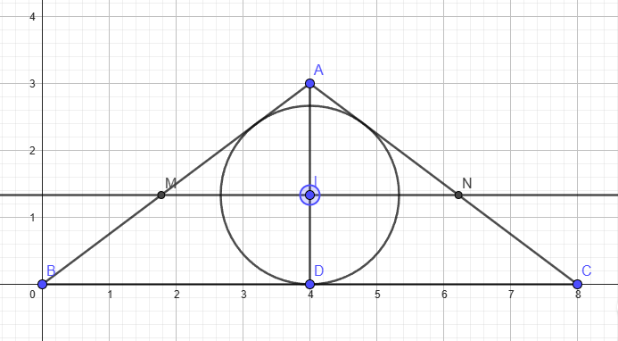 Triangles AMN and ABC are similar such that AI / AD = = (5/3) / 3 = 5/9