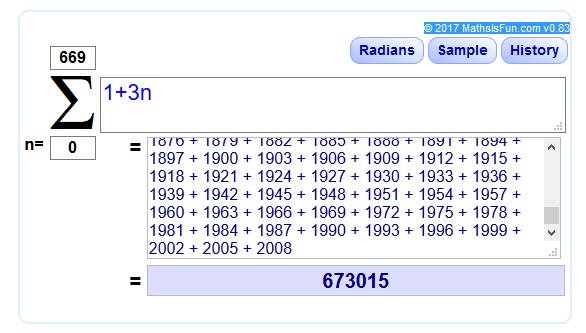 n/2 ( 2a + (n-1)d) n = 670 a = 1 d = 3