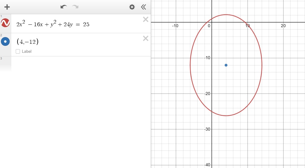 2 ( x-4)^2 + (y+12)^2 = 201 re-arrange to standard ellipse form