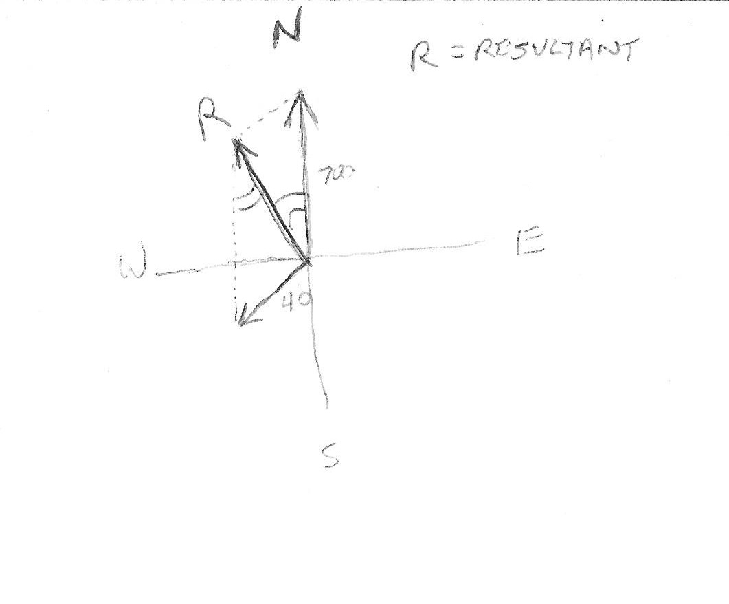 Wind wx= -40 cos45 wy= -40sin45 (see diagram)