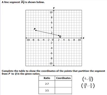 | 3:5 | x-coordinate = \(-7+\frac{3}{3+5}\cdot|-7-2|\,=\,-7+\frac38\cdot9\,=\,-7+\frac{27}{8}\,=\,-\frac{29}{8}\) y-coordinate = \(3-\frac{3}{3+5}\cdot|3-1|\,=\,3-\frac38\cdot2\,=\,3-\frac34\,=\,\frac94\) |