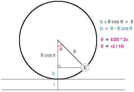 Also, you can turn on the folder called "graph of height" to see a graph of y = -8 cos( \(\frac{\pi x}{10}\) ) + 9