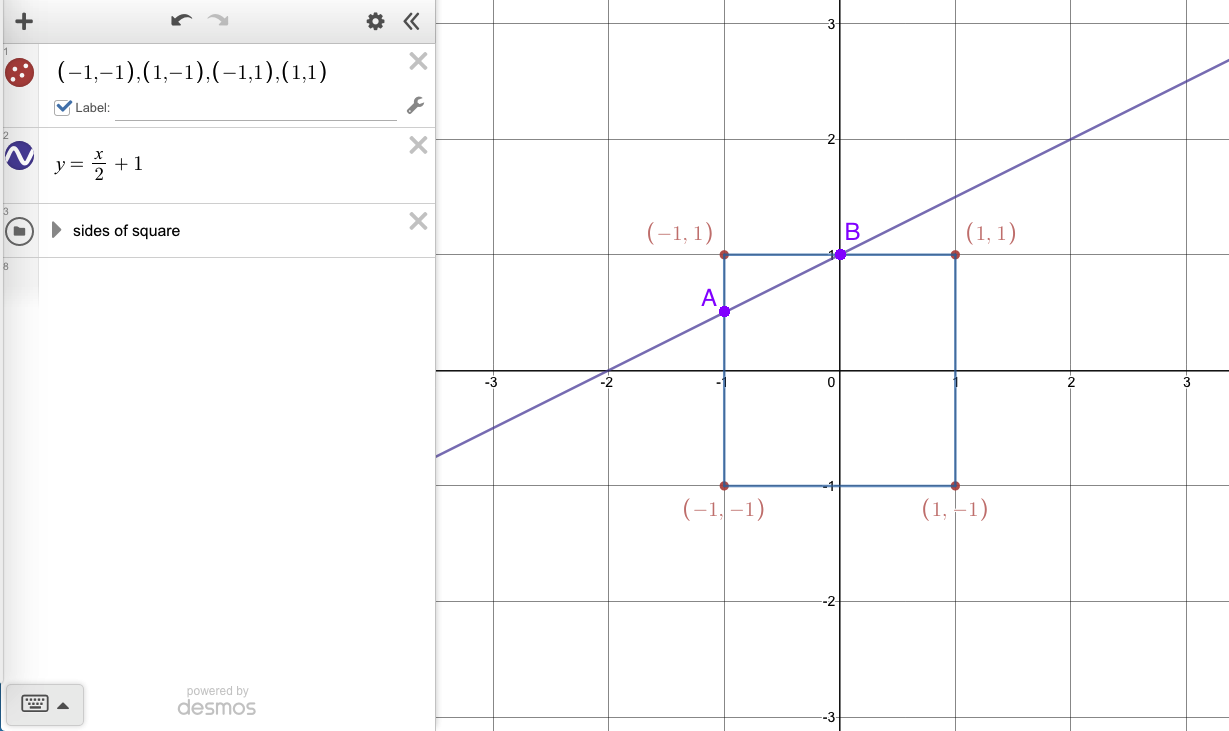 To find point B , we need to find the x-coordinate of the line when y = 1 .
