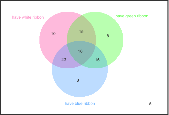 You can change each of the "labels" by modifying them in the list to whatever number you want, or click the check box to turn them on or off, and also you can click and drag them to on the graph move them around. Also you can customize the color of the circles or turn one of them on or off if you just want to make a Venn Diagram with 2 circles ![]()