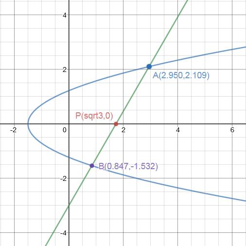 Solve the system x = y^2 + y + 1, 5y = 2 - x - x^2.