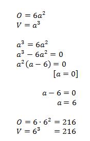 The volume of a cube is nuemrically equal to the surface area of a cube. What is the side length of the cube?