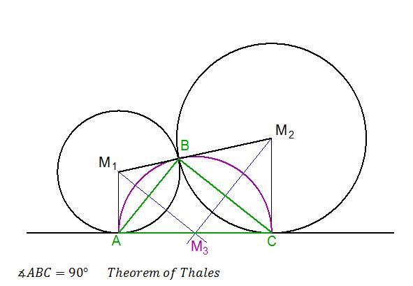 In the figure AC is a common tangent of two touching circles. If B is the touching point of both circles then which is of the following is true about angle ABC?