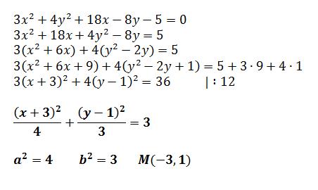 The general form of an ellipse is 3x^2+4y^2+18x−8y−5=0 .
