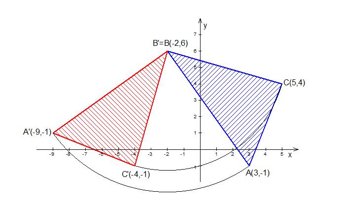 A triangle with vertices A(3,-1) , B(-2,6) and C(5,4) is rotated 90 degrees clockwise about Vertex B. Find the co-ordinates of the image of vertex C