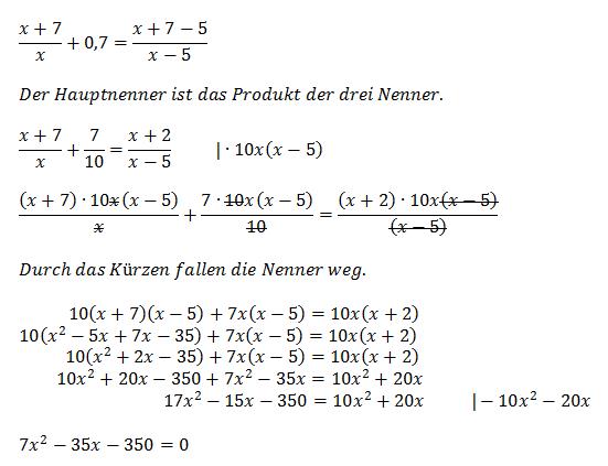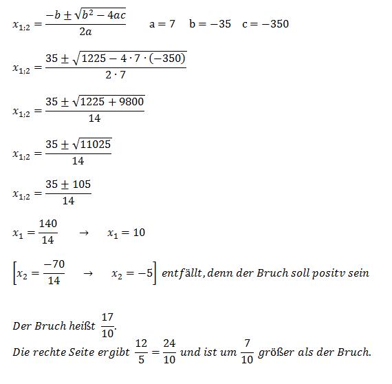 Bei einer positiven Bruchzahl ist der Zähler um 7 größer als der Nenner . Wenn man Zähler und Nenner beide um 5 verringert, so wird der Bruch um 0,7 vergrößert.