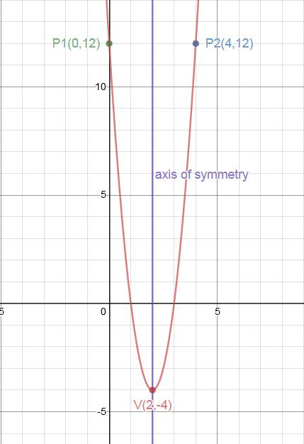 The parabola with equation y=ax^2+bx+c is graphed with a point of (4,12) and a vertex of (2, -4). The zeros of the quadratic ax^2 + bx + c are at x=m and x=n, where m>n. What is m-n?