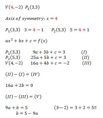 Find a function f whose graph is a parabola with the given vertex and that passes through the given point.
