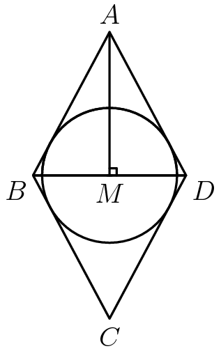 Drawing the altitude of sixteen to the base, we find that the area is \(\frac{1}{2}*16*15=120\). Multiply it by two since there are two triangles, to get \(2*120=240.\)And, using the Pythagorean Theorem, that gives us \(\sqrt{8^2+15^2}=\sqrt{17^2}=17.\) Multiply it by four to find the whole(full) perimeter, and divide it by two to find the semi-perimeter, to get \(17*2=34.\) Now, we found \(A\) and \(s\), and we divide it to get \(r\), to get \(\frac{240}{34}=\boxed{\frac{120}{17}}.\)